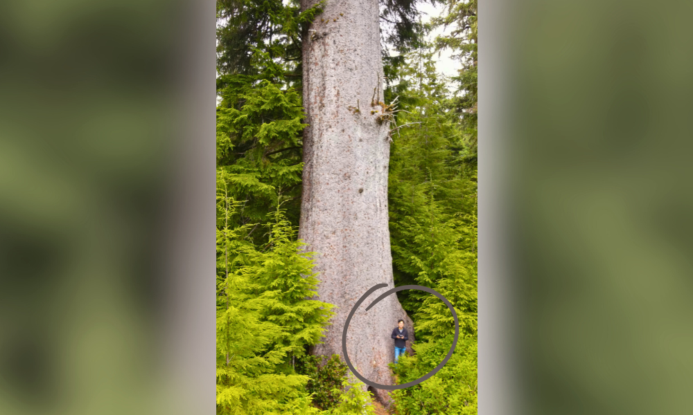 Lors d’une visite de site dans la forêt près de Port Hardy pour un projet de l’Initiative de foresterie autochtone, on nous a guidés vers cette épinette imposante, une vétérane qui a survécu à des décennies de tempêtes, d’infestations d’insectes et d’exploitation forestière – un symbole vivant de résilience et un témoin de l’histoire. — Chengdong Fang, agent de développement forestier