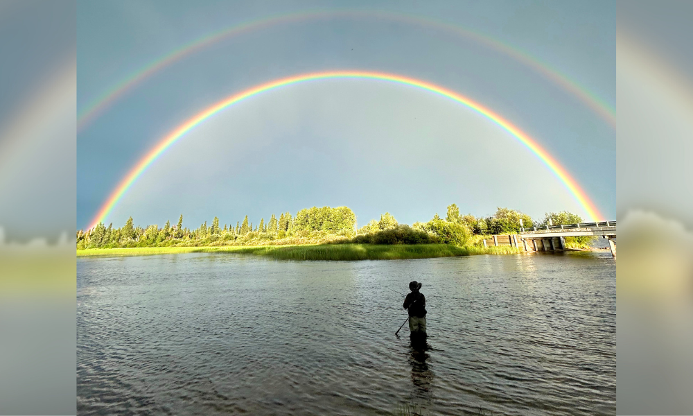 Notre équipe s’est rendue à Conklin, en Alberta, à l’été de 2024 pour recueillir le contenu de pièges. Le but? Étudier la biodiversité des arthropodes le long des lignes sismiques dans la forêt boréale. La chaleur de juillet nous a réservé son lot de défis, y compris de travailler dans des tourbières sans ombre à des températures de plus de 35 °C. Mais la vue imprenable du magnifique lac Christina nous encourageait à poursuivre le travail, sur ce terrain difficile où nous avancions péniblement. Nos efforts ont été grandement récompensés un beau soir d’été : nous avons eu droit au plus beau double arc-en-ciel qui soit, perçant la pénombre. Le ciel s’est illuminé, malgré le temps nuageux. Une expérience des plus magiques! — Norbert Nguyen, technicien de laboratoire, et Philip Hoffman, technicien en biodiversité des insectes