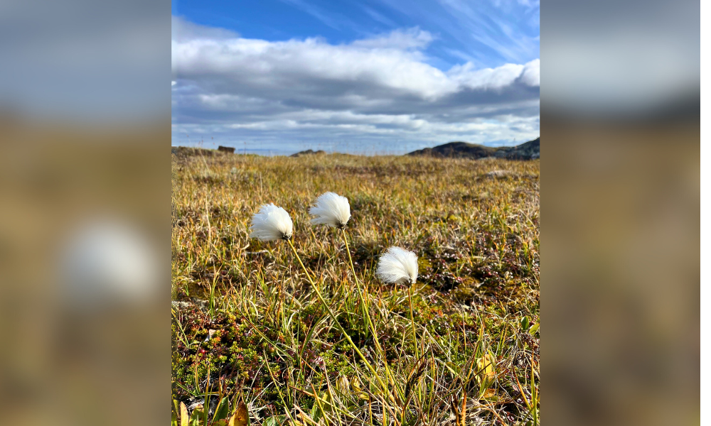 Qui dit automne au Nunavut dit métamorphose du paysage en raison de l’abondance de linaigrette, que les Inuits appellent le coton arctique (kanguuyat). On retrouve ces petites plantes blanches duveteuses, qui rappellent des boules de ouate, dans les parties plus humides de la ville et dans la toundra, comme on le voit ici dans le parc territorial Qaummaarviit, près d’Iqaluit. Cette fleur était de loin ma préférée lors de mon séjour. J’ai d’ailleurs beaucoup aimé voir les gens en cueillir pour composer de jolis bouquets afin d’égayer leur demeure. Outre sa beauté qui fait l’unanimité, la linaigrette est extrêmement polyvalente et constitue une importante ressource pour les communautés inuites. — Marie-Krystel Gauthier, biologiste moléculaire