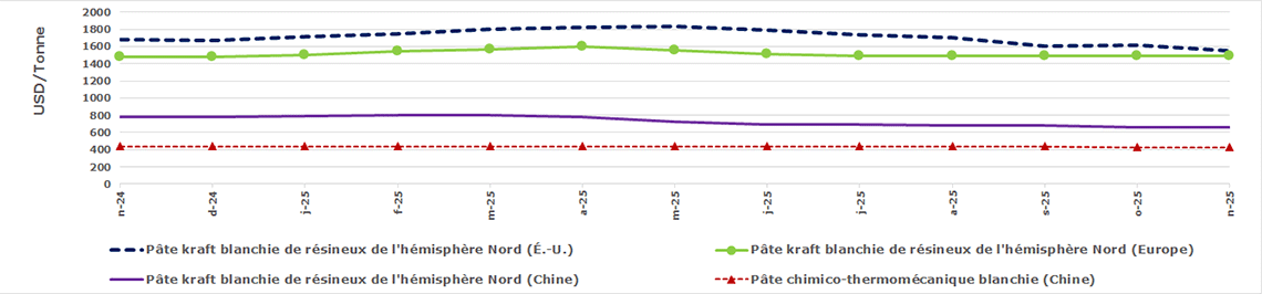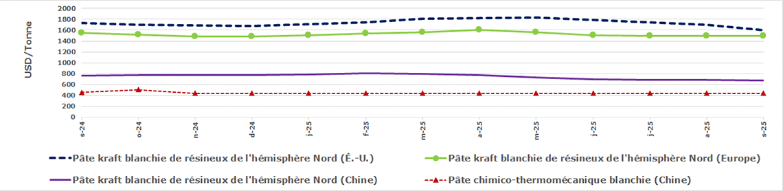 - les prix de la pâte aux États-Unis, en Europe et en Chine
