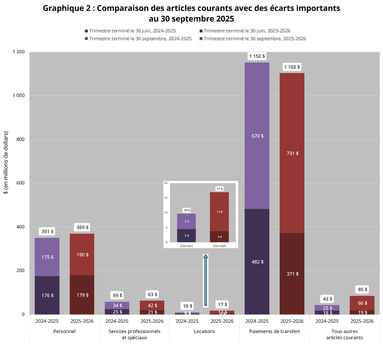 | Graphique 2 : Comparaison des articles courants avec des écarts importants au 30 septembre 2025 | |||